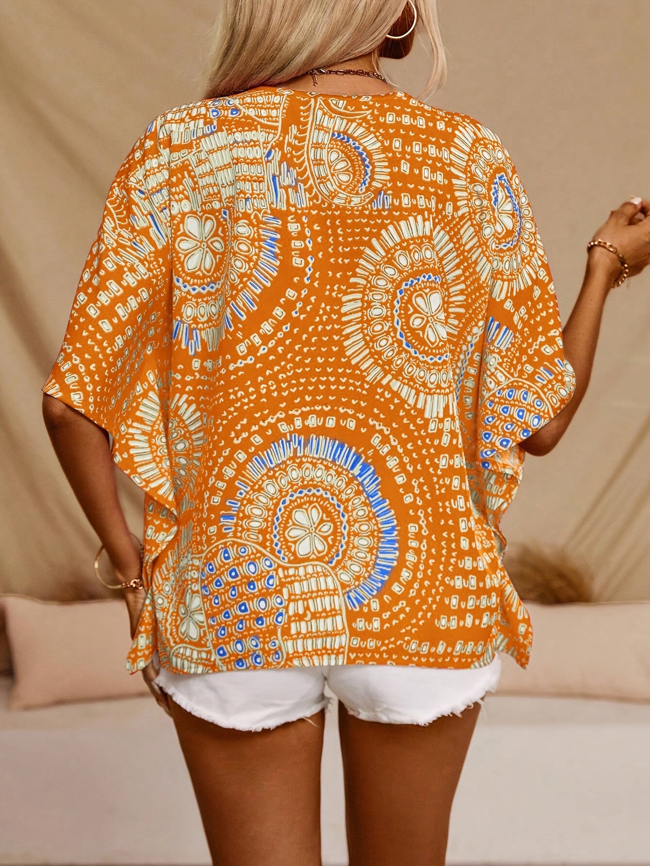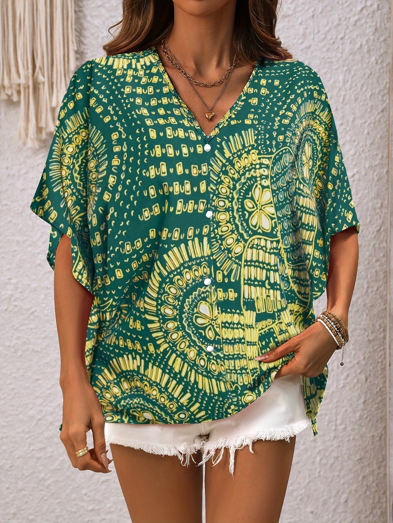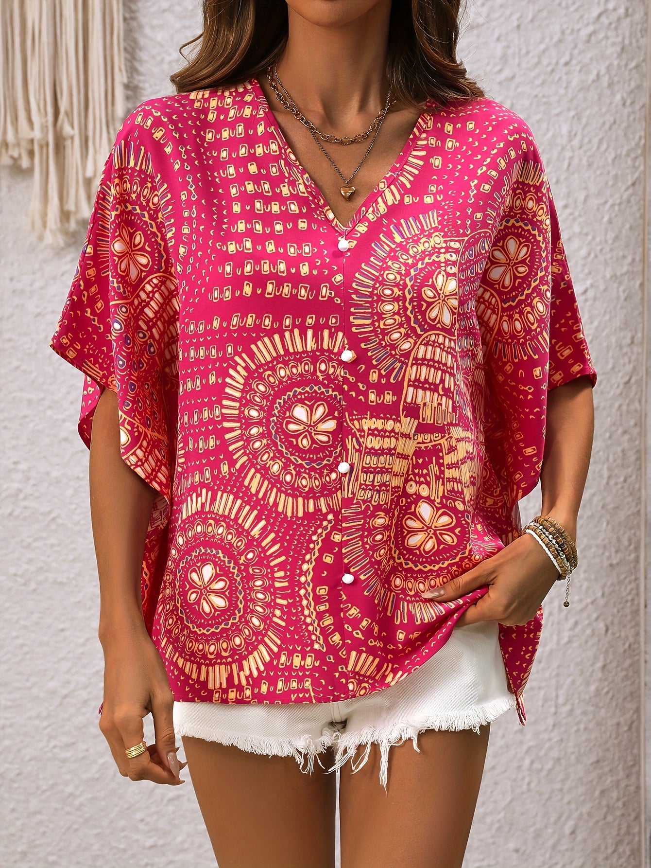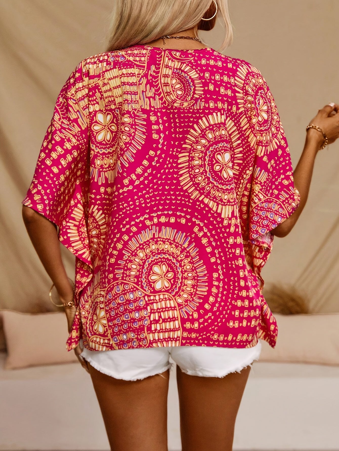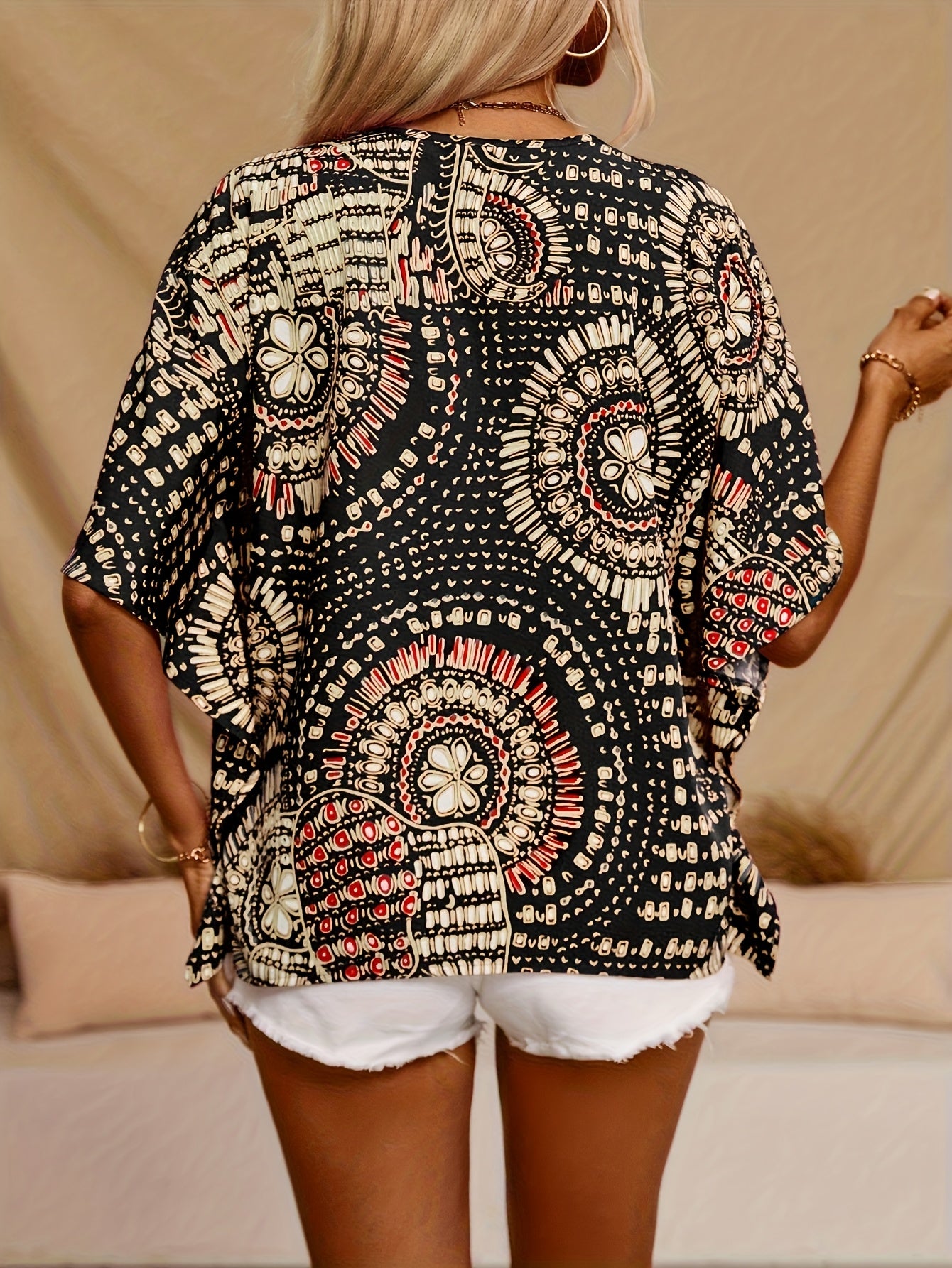 Mandalamönstrad topp med fladdermusärm